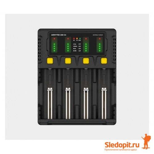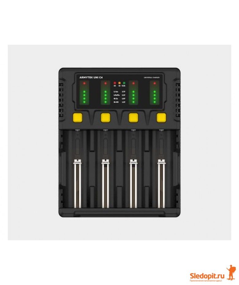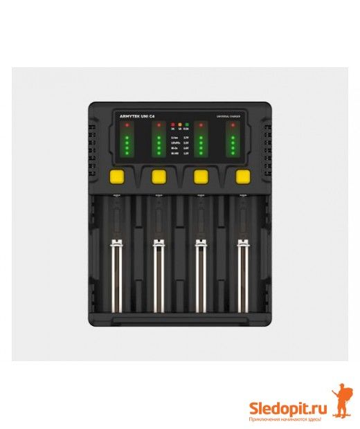 Uni C4 – универсальное зарядное устройство с интеллектуальным автоопределением типа аккумулятора, уровня заряда и оптимального тока. Одновременно заряжает до 4 аккумуляторов разного типа током до 2А. Отдельная кнопка для каждого канала обеспечивает простое ручное управление. Автомобильный адаптер в комплекте.