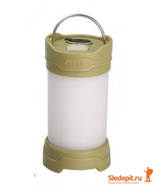 5-сантиметровый кемпинговый светильник CL25R с привычной «домашней» силой света в 350 люмен может быть перенесен в любое место, где требуется освещение. Он освещает пространство вокруг диаметром до 25 метров. В светильнике применяется специальный батарейный отсек, спроектированный для работы при низких температурах. 6 режимов яркости в CL25R, включая лунный свет и красный свет, могут работать как от двух батарей CR123A либо одного аккумулятора 18650, так и от USB зарядки от сети либо переносного источника питания. CL25R оснащен встроенной петлей, гнездом под штатив и магнитом для функционального и удобного крепления.
