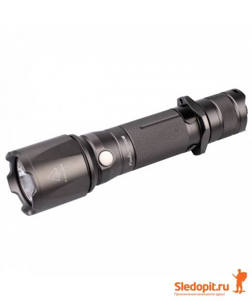 Корпус фонаря TK15UE сделан из алюминия и покрыт анодированием. Примечательно, что покупатели могут выбрать из двух вариантов цвета: черного и серого (Cadet grey). Прочный материал надежно защищает фонарь от ударов, царапин и других механических поломок. В том числе, корпус защитит его и от отдачи во время выстрелов. Чтобы фонарь удобно было держать, поверхность корпуса сделана неровной — с ромбовидной накаткой. На корпус также надето тактическое кольцо, которое, при желании, можно снять. А зафиксировать фонарь в кармане можно, используя клипсу.