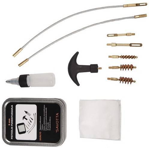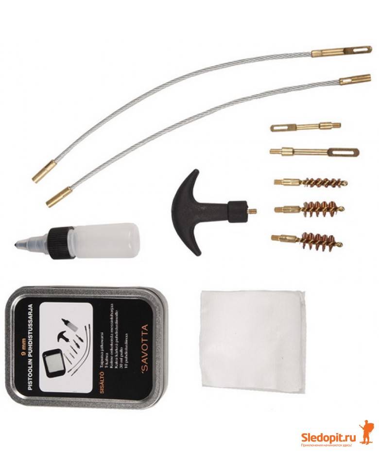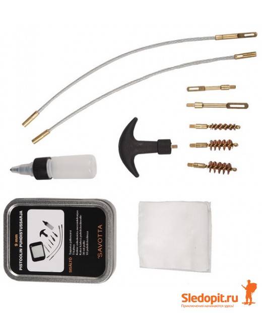 В комплекте для чистки пистолета имеются все необходимые для этого вещи: