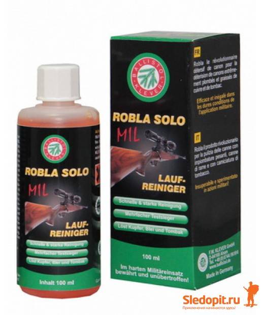 Средство для чистки стволов зарекомендовало себя в трудном боевом применении и оказалось непревзойденным! На основе отличных результатов испытаний оборонного института бундесвера средство Robla Solo используется даже в войсках специального назначения.