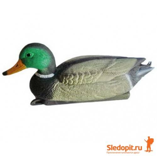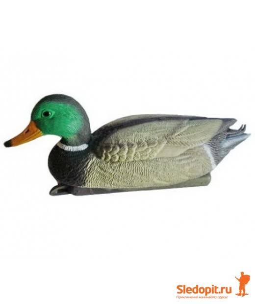 Чучело полнотелое повторяющее размер живой утки с реалистичным окрасом и не бликующим на солнце.