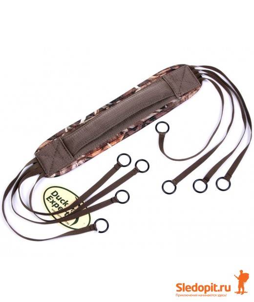 Широкая основа переноски имеет крупную и прочную ручку для ее ношения в руке, а вставка из вспененного материала позволяет легко и комфортно переносить дичь на шее на длительные расстояния, при этом достаточно длинные петли переноски не будут стеснять или ограничивать движения охотника.