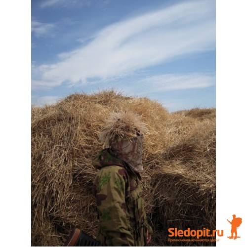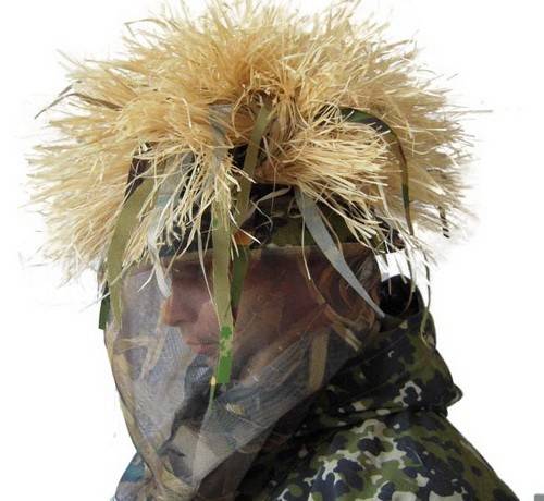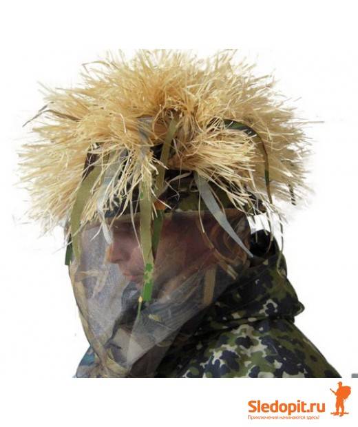 Маскировочная панама ХАНТЕР имеет маскировочную антимоскитную сетку, что позволяет маскировать лицо и избегать укусов насекомых, а также в панаму вшит шнур-утяжка. На верху панамы нашиты маскирующие элементы, имитирующие натуральную растительность, что позволяет оставаться незамеченным с высоты птичьего полета.