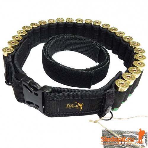 Простой и удобный быстросъемный патронташ на 28 патронов 12, 16 или 20 калибров шириной 50 мм. Дюзы патронташа выполнены их прочной резиновой ленты, с качественной прошивкой, которая надежно удерживает патроны и при этом позволяет охотнику без особых усилий набить патронташ патронами.
