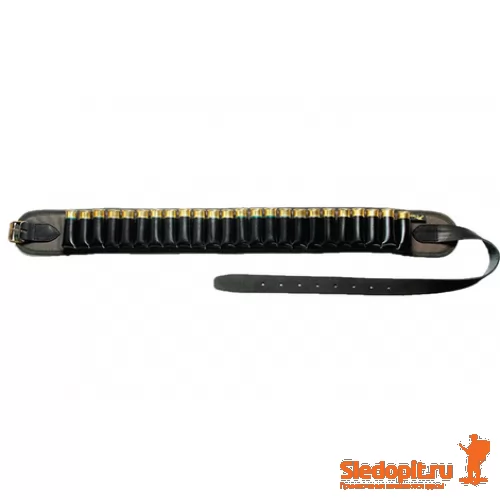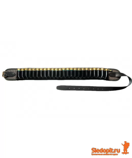 Патронташ на 24 патрона, выполнен из синтетической ткани, ремень и газыри выполнены из натуральной кожи.