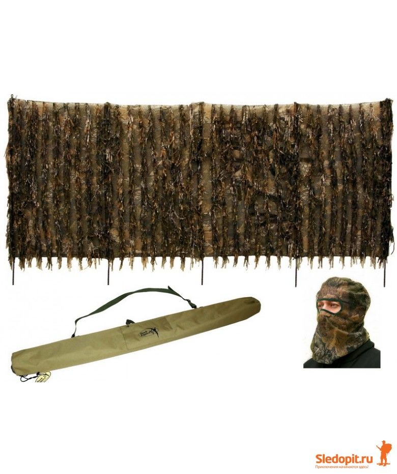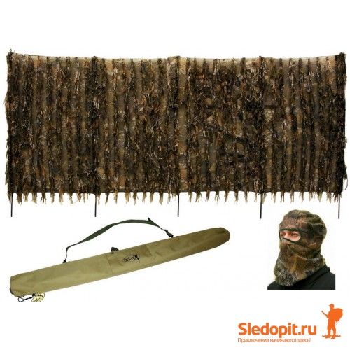 Скрадок-засидка предназначен для комфортной охоты 1-2 охотников. Благодаря малому весу, компактным размерах и специальному чехлу для хранения и транспортировки он удобен для переноски на большие расстояния до места охоты. В комплект каждого скрадка-засидки входит удобная маска для лица, выполненная их полиэфирной сетки в основной цвет скрадка-засидки. Данная маска позволяет охотнику максимально слиться со скрадком, скрыть лицо и шею, благодаря сетчатой структуре позволяет слышать все звуки приближения птицы или зверя , а также защищает от назойливых насекомых.