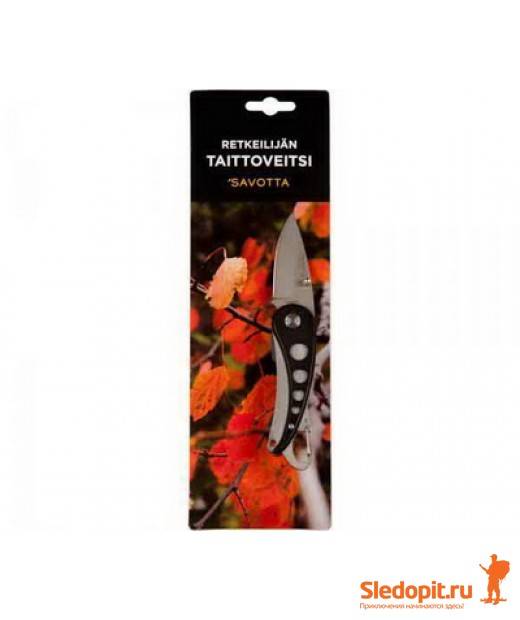 Нож охотничий, складной Savotta Trekking Knife cнабжен карабином для крепления на ремень или пояс. Лезвие ножа выполнено из нержавеющей стали.