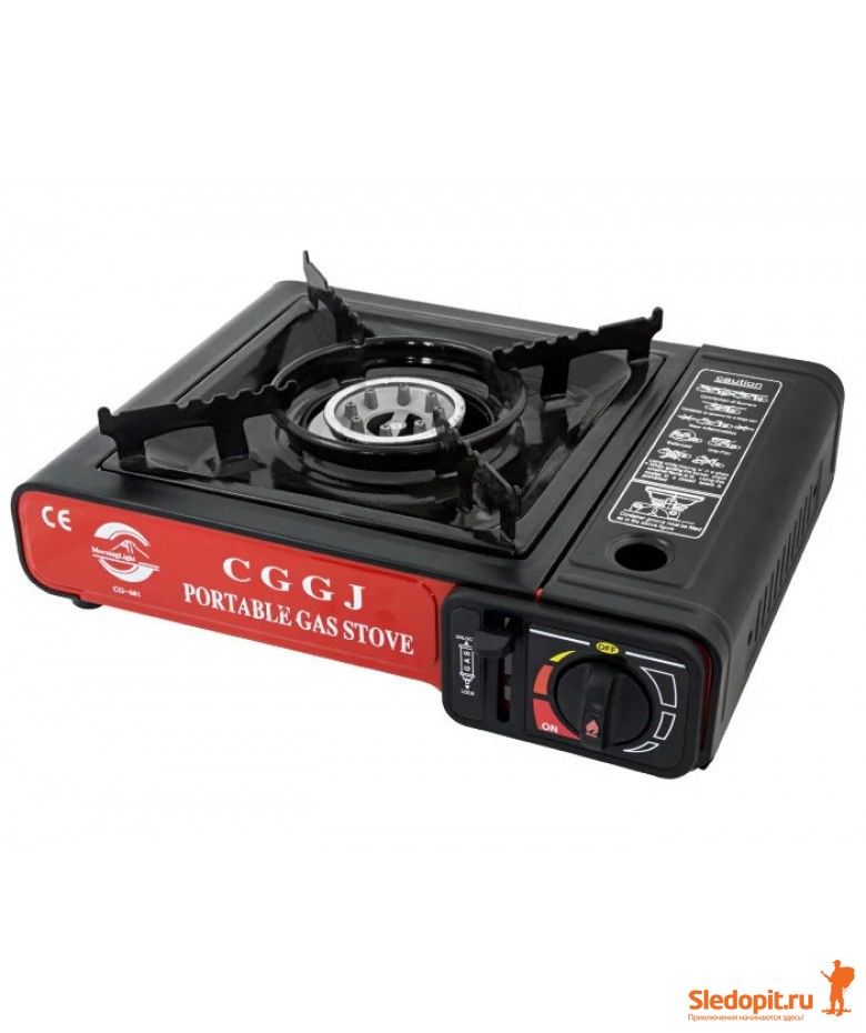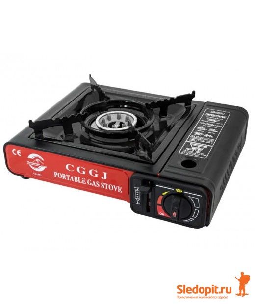 Портативная керамическая однокомфорочнаяя газовая плитка с пьезоподжигом (с переходником). Работает от одного стандартного высокого газового баллона н 220 г, который продается на любой заправке, который помещается внутри плиты.