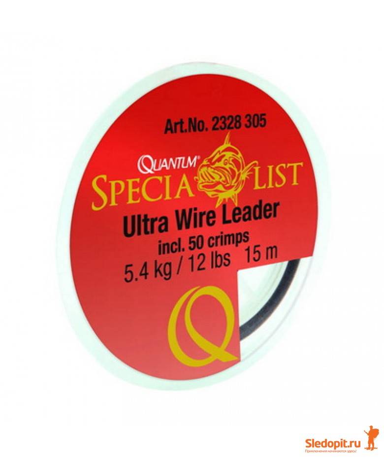 Этот тонкий и гибкий поводочный материал способен надежно противостоять острым зубам любой хищной рыбы. Материал удобен в работе, в комплект входят 50 фирменных обжимов для изготовления поводков.