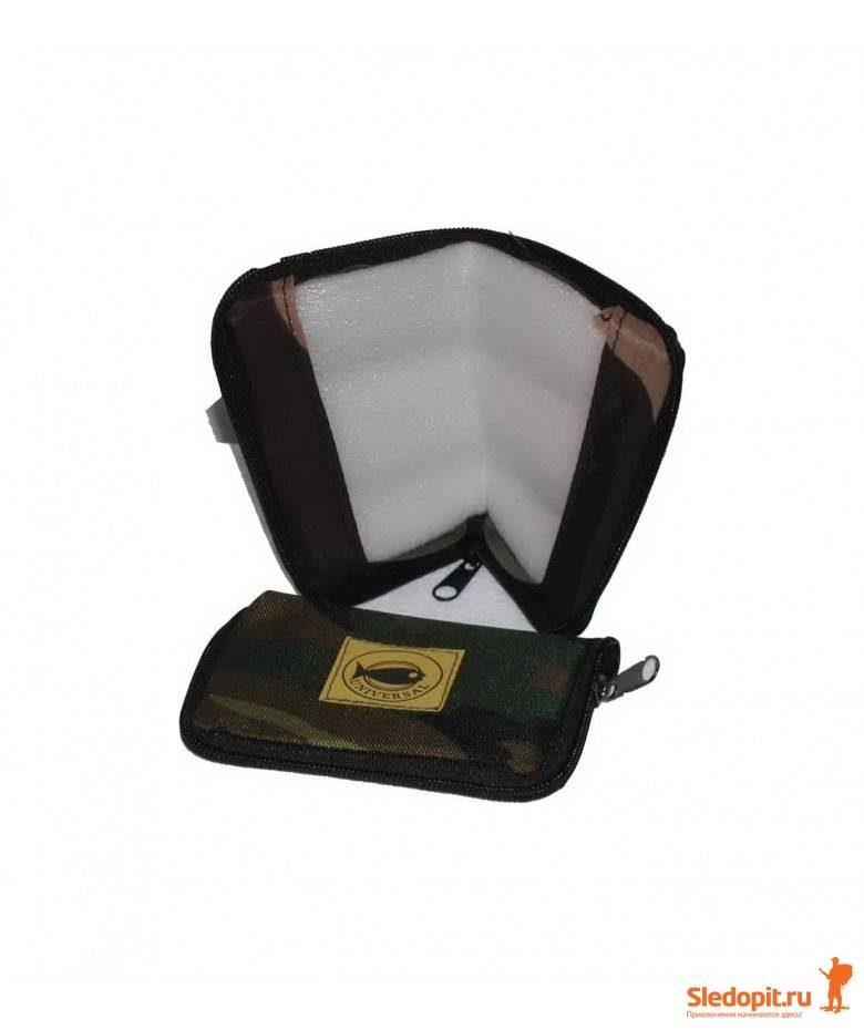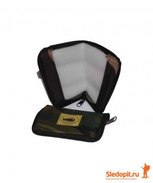 Внутри пенополиэтиленовая вставка, на которую накалываются мормышки, крючки, иск. мушки, блёсны и т. д.