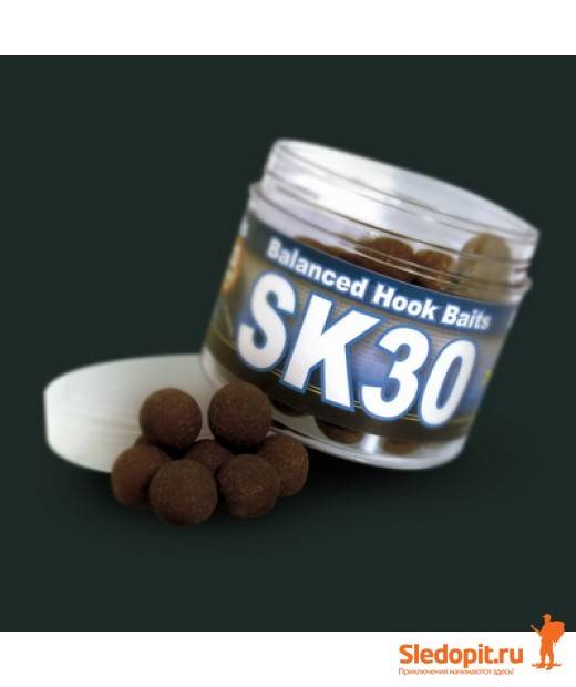 Бойлы StarBaits SK30 изготавливаются с использованием специально подобранных высококачественных продуктов на основе растворимых белков из рыбы и морских экстрактов, в частности кальмара и криля. Бойлы SK30 имеют мягкую структуру, которая, при попадании их в воду, обеспечивает обильное выделение растворимых белков и аминокислот, сильно привлекающих к себе рыбу. Бойлы имеют сбалансированный уровень натуральных масел, способствующих быстрой усвояемости пищи, в результате чего крупная рыба быстро набирает вес.