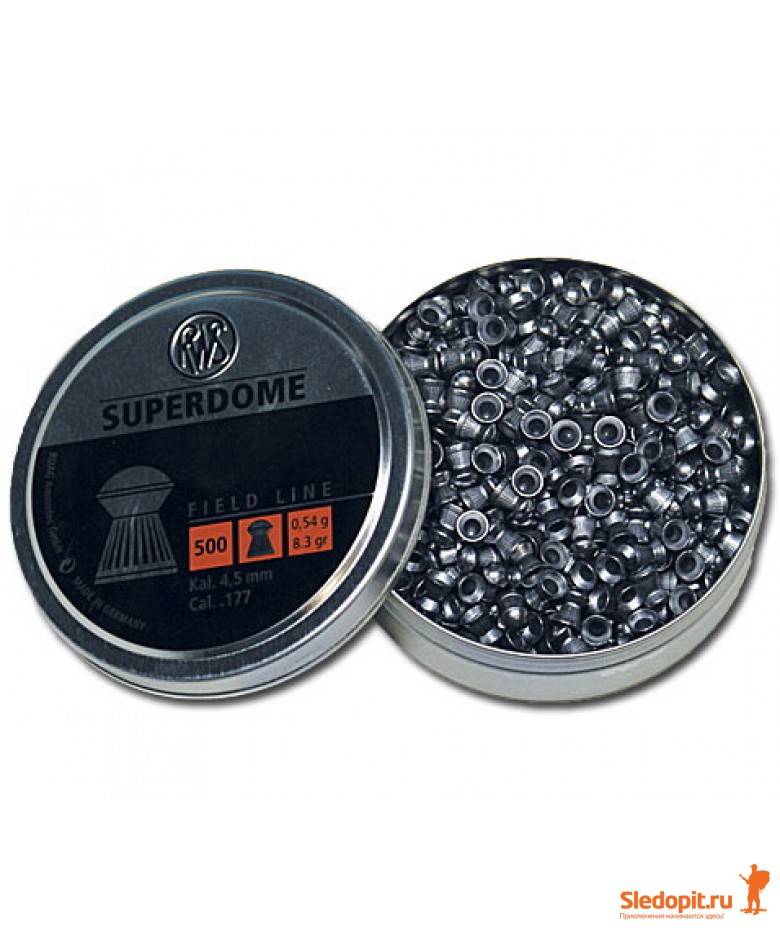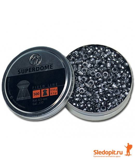 Пуля пневматическая марки RWS SUPERDOME (Супердоум), масса - 0,54 г для пневматической винтовки. Корпус рифлёный, с круглым наконечником. Контуры напоминают известные очертания английского бульдога. Конструктивные особенности обеспечивают высокую пробиваемость и проникающую способность. Подкупает высокой точностью поражения цели на больших расстояниях.
