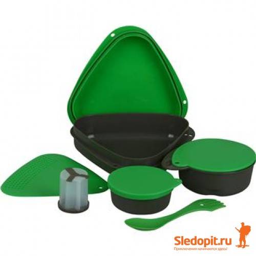 Для того чтобы посуда не разбегалась, можно всегда носить ложку в сапоге, а кружку пристегнутой к поясу или шить изящные капроновые мешочки, а можно положить ее в легкий контейнер, например такой как в наборе "Bend".