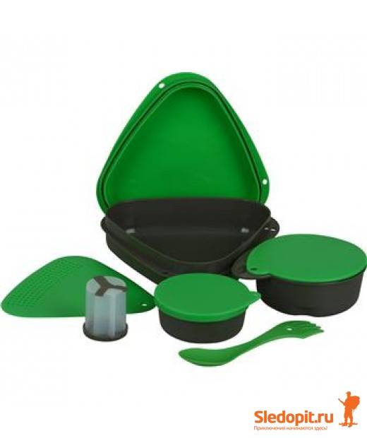 Здесь нет ничего лишнего. Контейнер станет удобной емкостью для продуктов и тарелкой. Миска и кружка с плотными крышками, за счет чего еда и питье в них медленнее остывают, в них не попадают насекомые, можно хранить пищевые продукты и настаивать чай. Разделочная доска в одном лице с теркой, ложка с вилкой. Контейнер для трех специй. Не нужно ни в чем себе отказывать. Все легко, компактно и доставляет эстетическое удовольствие.