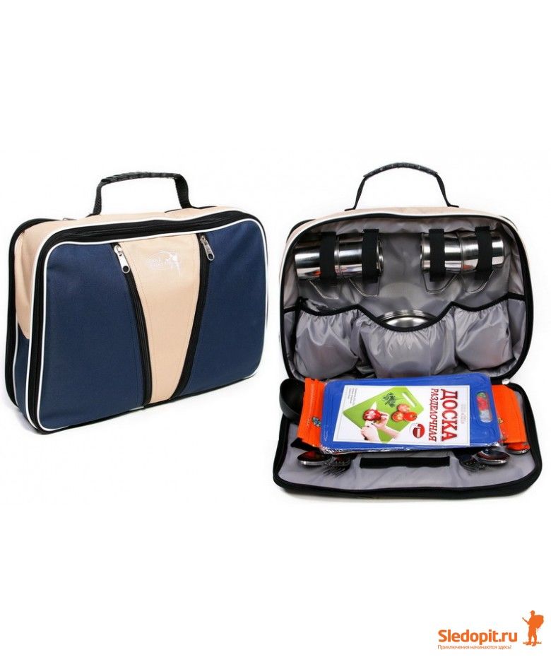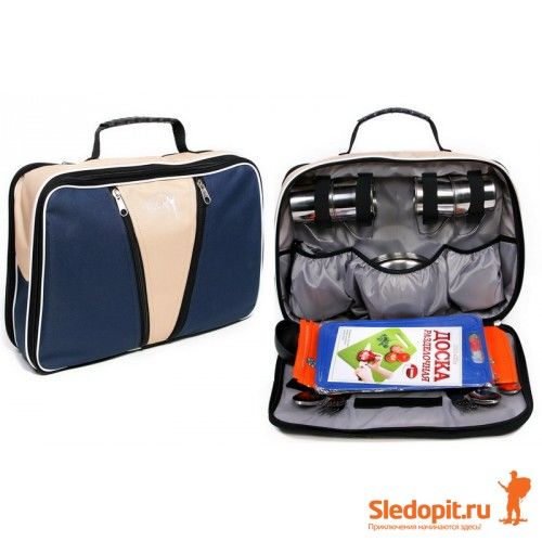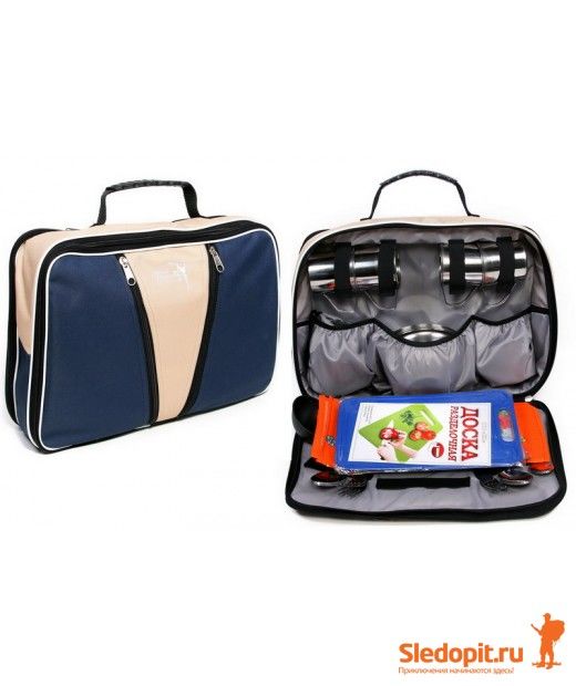 Большой, ссновательный, полноценный набор посуды для пикника в котором есть все необходимое для 6 персон. Все предметы укладываются в специальный кейс, где фиксируются прижимными элементами.